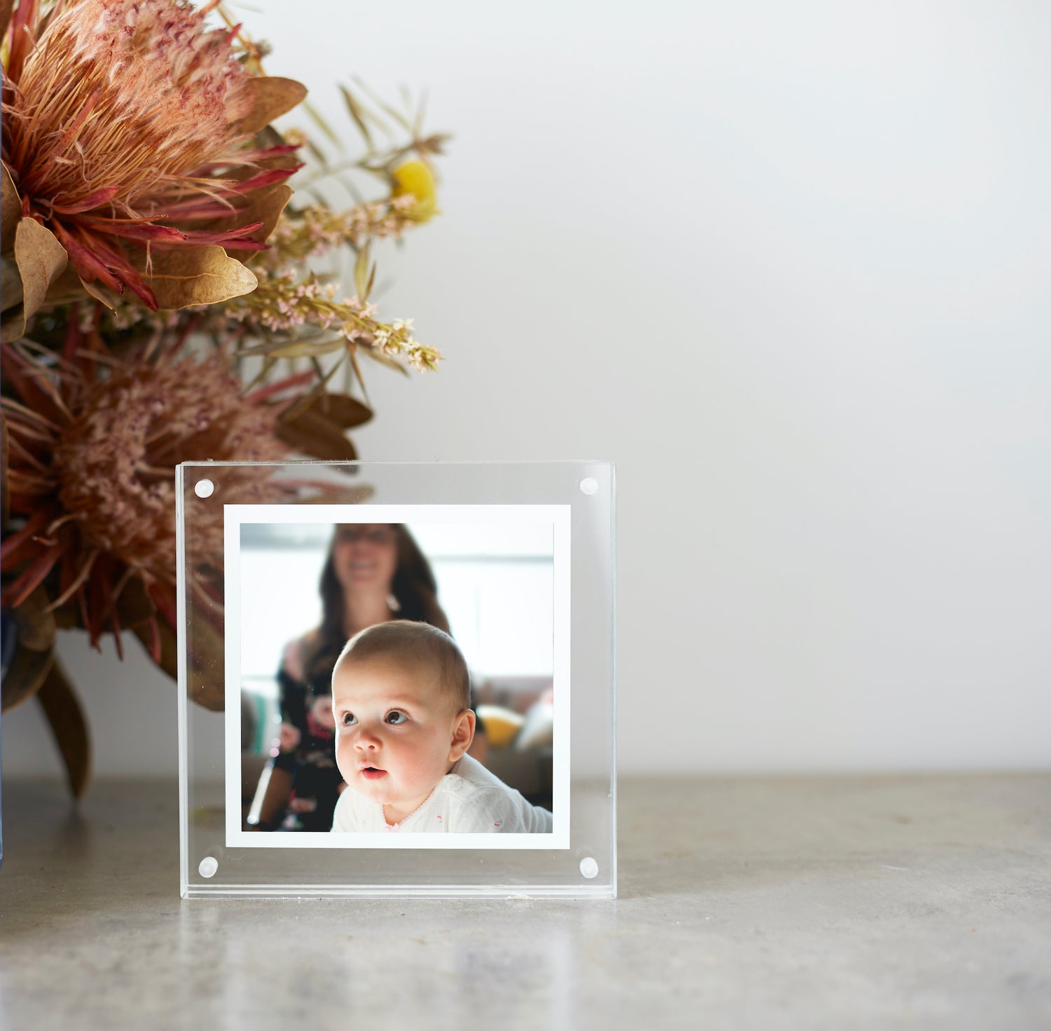Make a statement and give your memories a stylish home with this heavy-duty Acrylic Desk Frame! Plus, you can be sure it won't go anywhere with four strong magnets securely holding it in place! Ah-mazing!